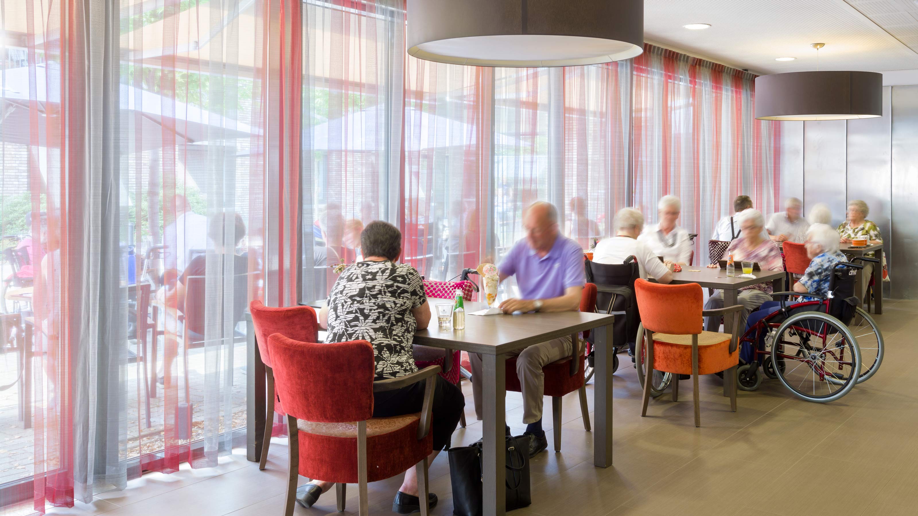 A combination of newly built and renovated buildings provides accommodation for residents with varying care needs. The three-room apartments offer not only light care but also specific care in three living groups, each with eight client rooms. In this environment, residents experience in a pleasant way that they still play a meaningful role in society, while the neighbourhood, thanks to the available facilities, is drawn into the care centre.